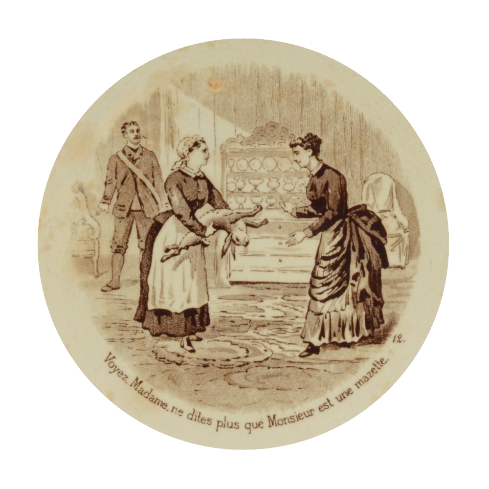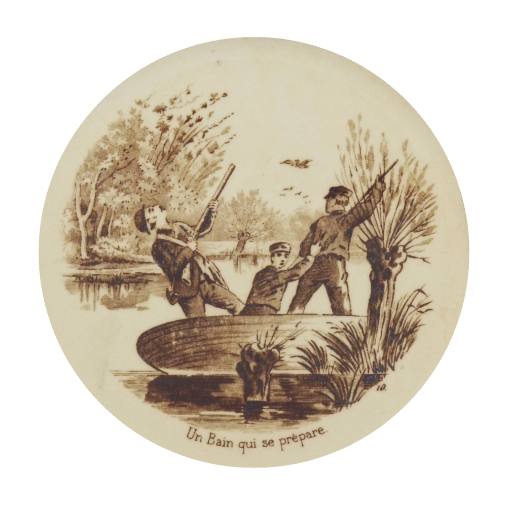 Légende(s) : La légende est inscrite en lettres minuscules et suit la forme arrondie de l'assiette