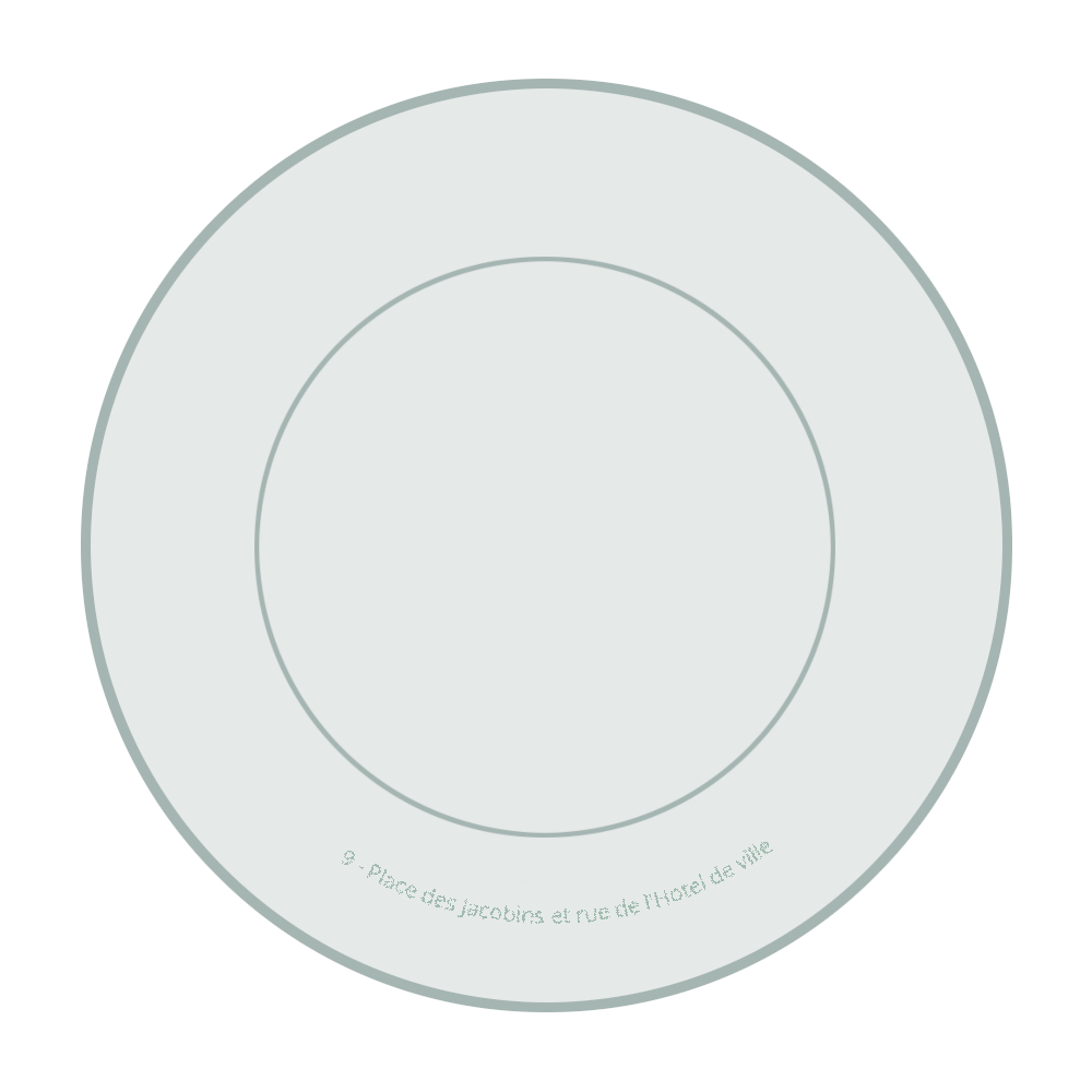 Légende(s) : Les légendes sont inscrite en lettres capitales d'imprimerie et suivent la forme arrondie de l'assiette