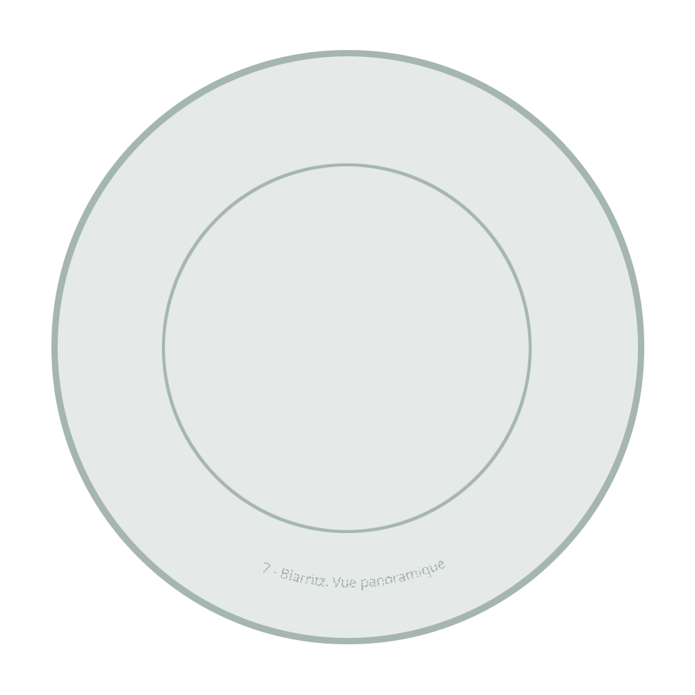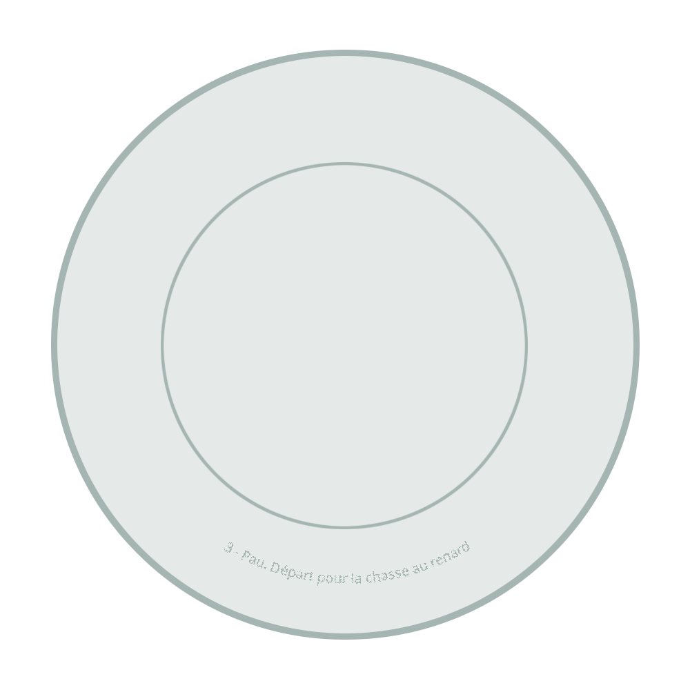 Légende(s) : Le titre de la série est inscrit en lettres capitales d'imprimerie. Le titre de l'assiette est écrit en lettres minuscules. Les deux légendes suivent la forme arrondie de l'assiette